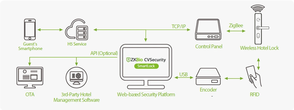 A smart entrance solution goes beyond a standalone lock. It is designed as an integrated ecosystem that combines Smart Locks for AirBnBs and Hotels with centralized software management.